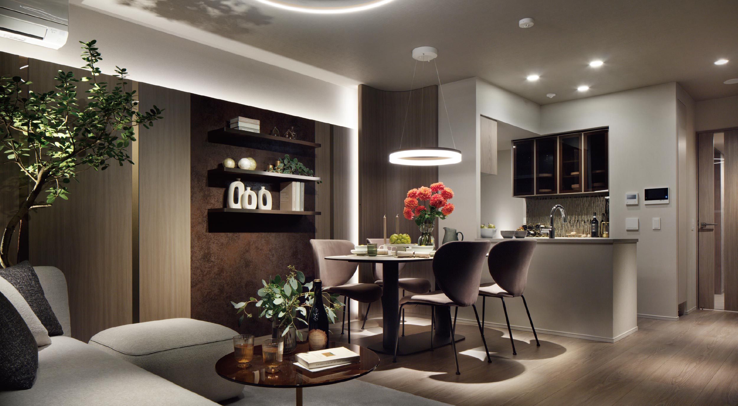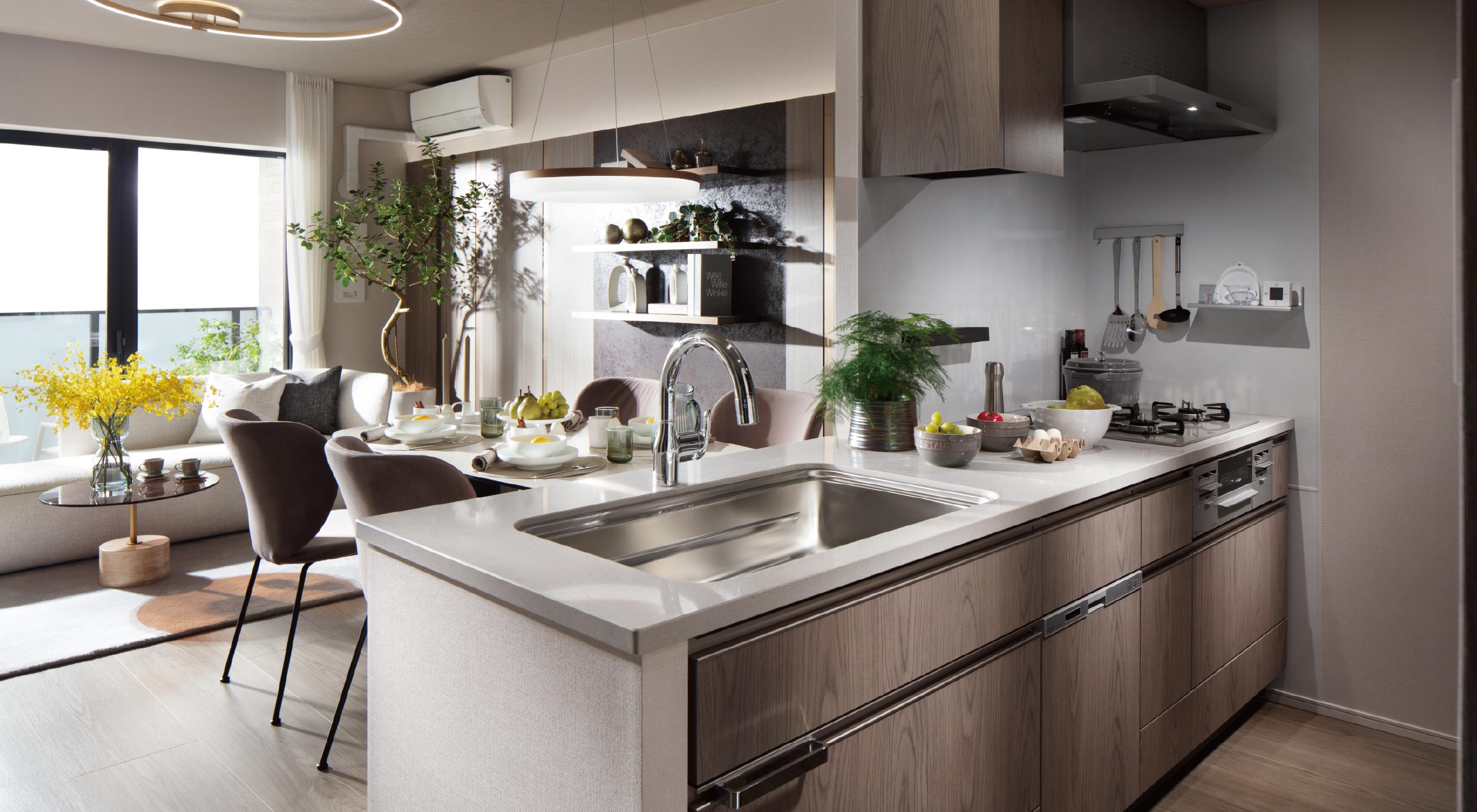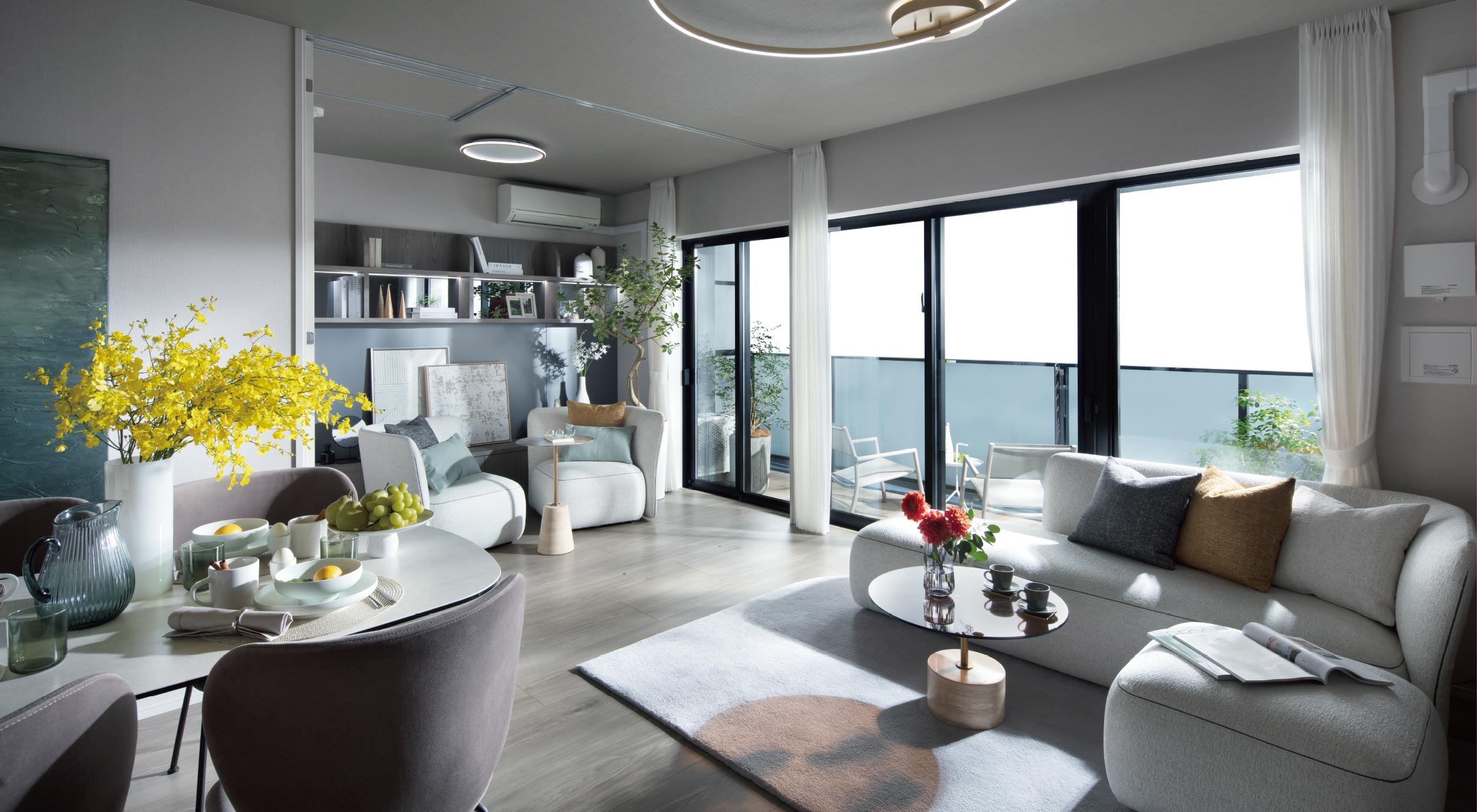 ※掲載の写真は、モデルルーム(Jタイプ)を撮影(2024年11月)したもので、写真の色調等は実際と異なります。有償の造作家具・アクセントクロス・照明・装飾用小物等オプションも含まれております。また、家具・調度品等は販売価格に含まれておりません。詳しくは係員へお尋ねください。