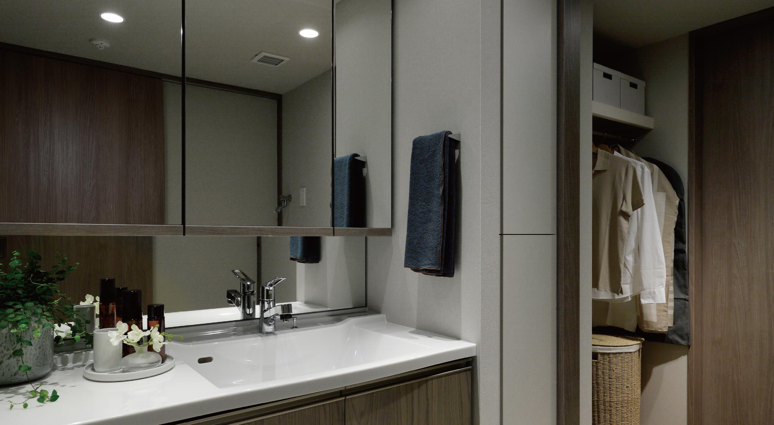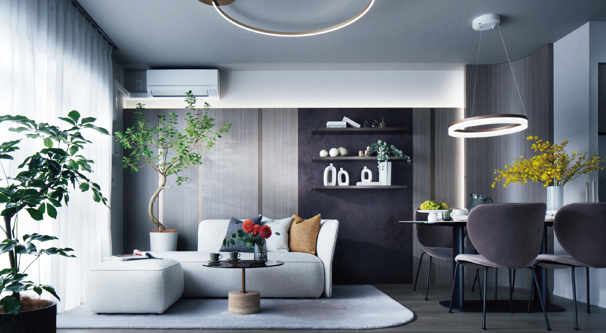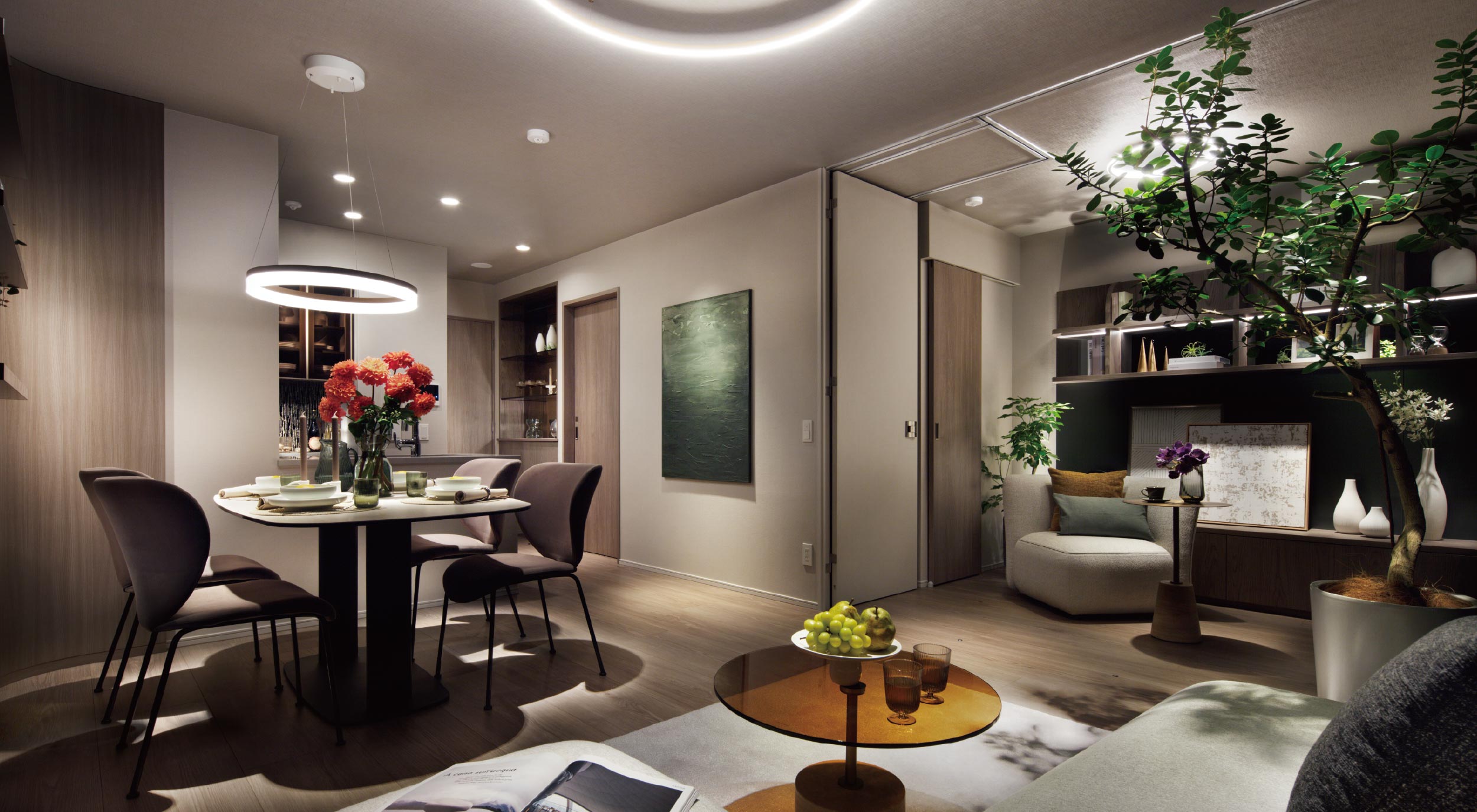 ※掲載の写真は、モデルルーム(Jタイプ)を撮影(2024年11月)したもので、写真の色調等は実際と異なります。有償の造作家具・アクセントクロス・照明・装飾用小物等オプションも含まれております。また、家具・調度品等は販売価格に含まれておりません。詳しくは係員へお尋ねください。