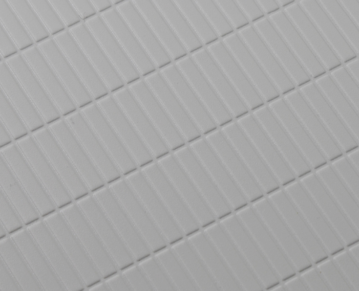 水の表面張力を壊す効果で乾きやすい床です。従来よりも更に滑りにくく、また同一方向に揃うグリッド加工によってお掃除もしやすくなりました。
