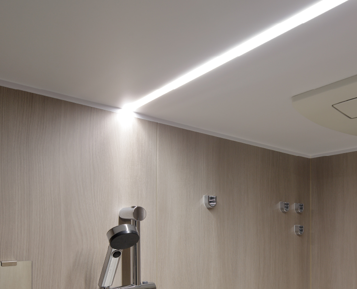スタイリッシュなスリット形状のLED照明です。お肌のお手入れに適した白色が浴室を美しく照らします。