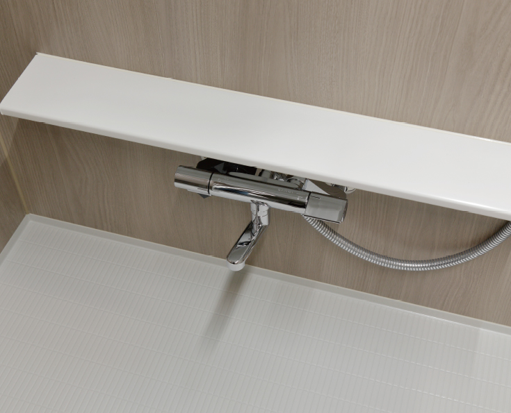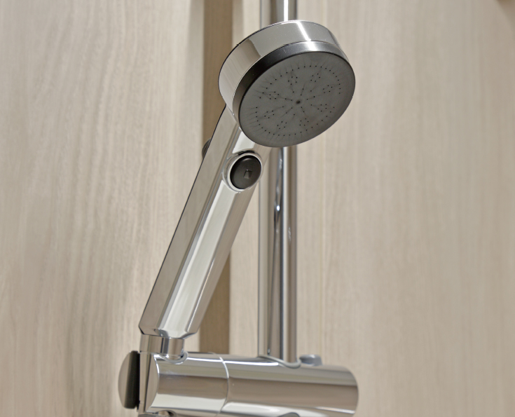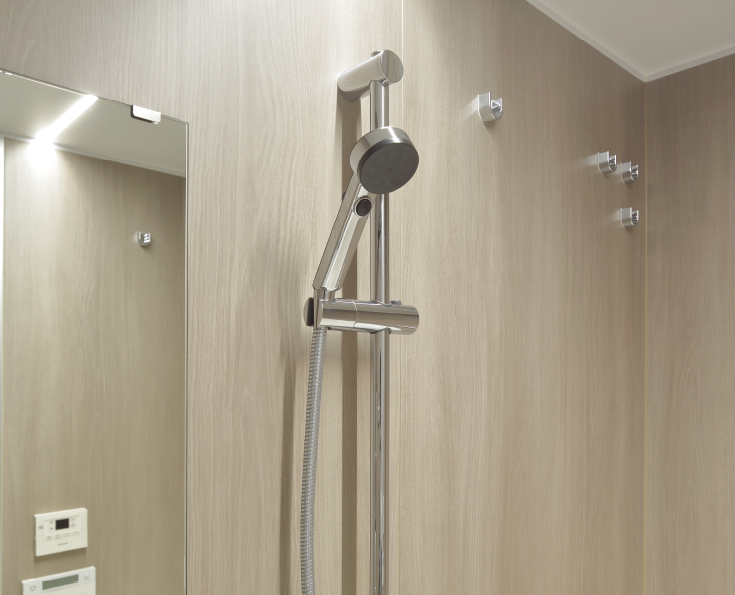 シャワーの高さを自由に調整できるスライドバーを採用。