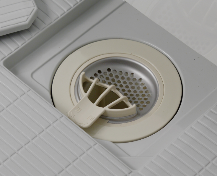 汚れを防ぐフッ素系特殊コーティングで排水溝のお手入れがラクラク。