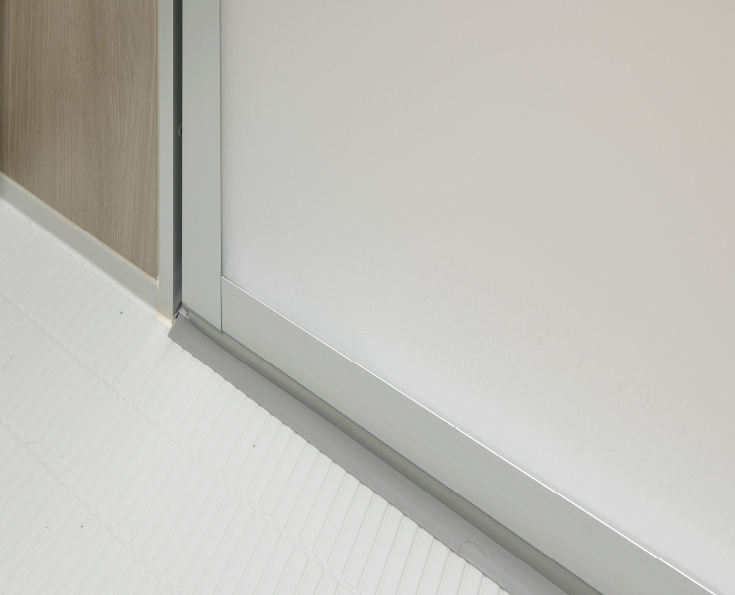 フレームと浴室側ドア面材の段差を小さく、パッキンも無くしてお手入れが簡単な扉を採用。ハンドルも掴みやすいバーハンドル形状です。