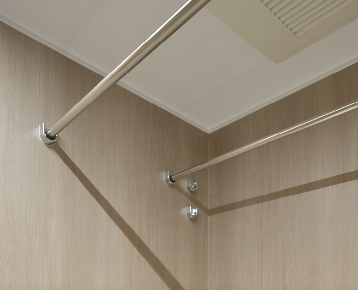 浴室で洗濯物を乾燥する際に重宝するランドリーパイプを2本設置しました。梅雨や花粉の時期に活躍します。