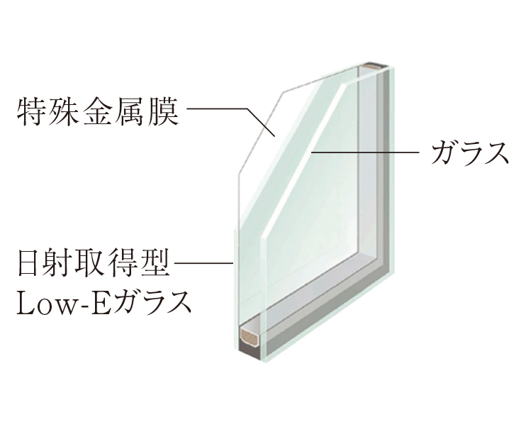 ガラスの間の中間層にLow-E金属膜を施した複層ガラスを採用。遮熱性に優れ、紫外線も一部カット。