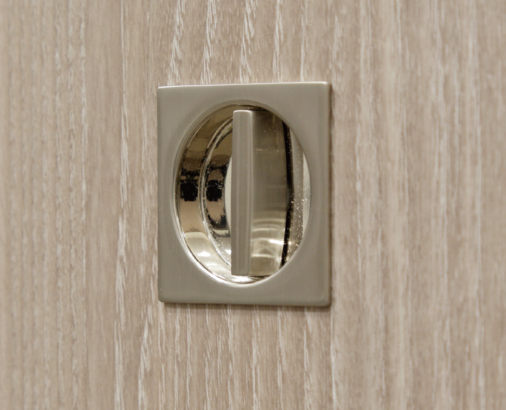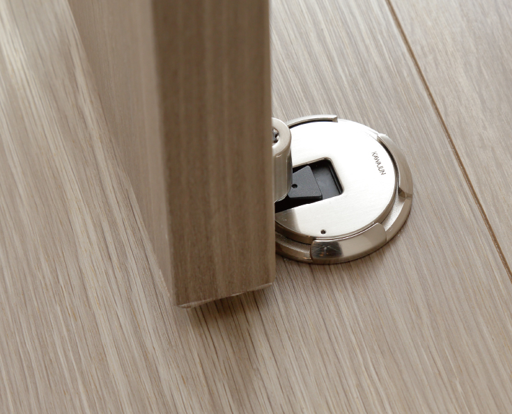 押してキャッチ、もう一度押すと解除されるワンプッシュの薄型ドアキャッチャーを採用しました。