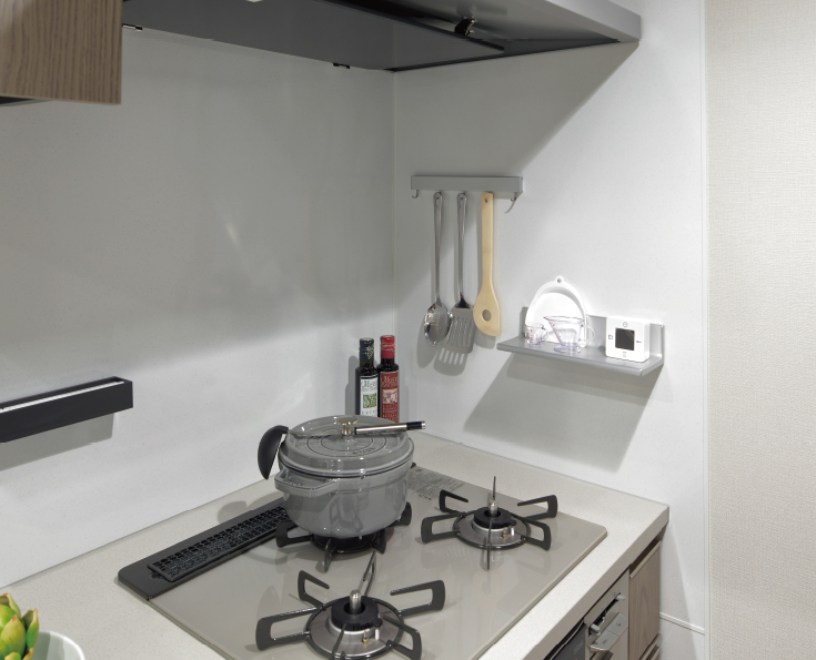 汚れが染み込まず色あせにくいホーローキッチンパネルを採用。汚れを容易にキレイにすることができ、美しいキッチンを保ちます。またマグネット小物を設置することもできるので使い方も自在です。