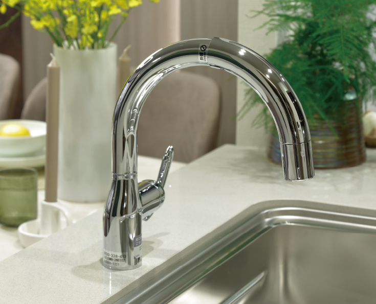 吐出口部を引き出すことができ洗面ボウルのお掃除等にも便利です。