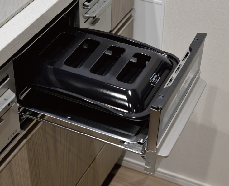食器を出し入れしやすい引き出しタイプ。除菌洗浄、除菌乾燥機能付きで衛生面にも配慮。お料理・キッチン作業の手間も軽減します。