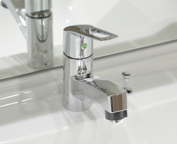 スリムなフォルムで、空間のゆとりを広げます。汚れがつきにくい仕様で、お掃除も楽々。節水効果にも優れています。