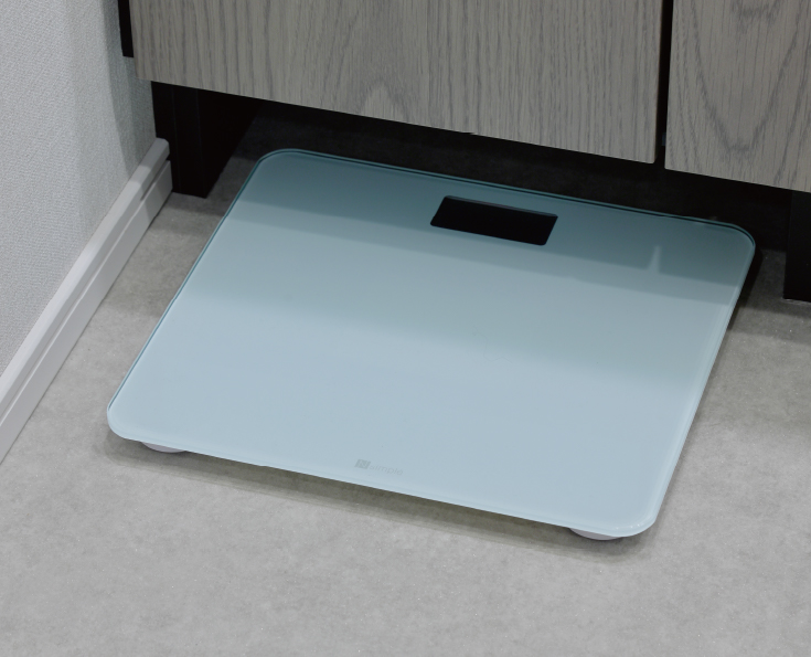 洗面化粧台にはヘルスメーターのための収納スペースを設置。使いたい時にサッと取り出せます。