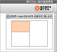 現在拡大表示されている範囲が、オレンジ枠で表示されます。 ナビゲーションウインドウ内をクリック、またはオレンジ枠をドラッグすることにより、表示範囲を移動できます。 |