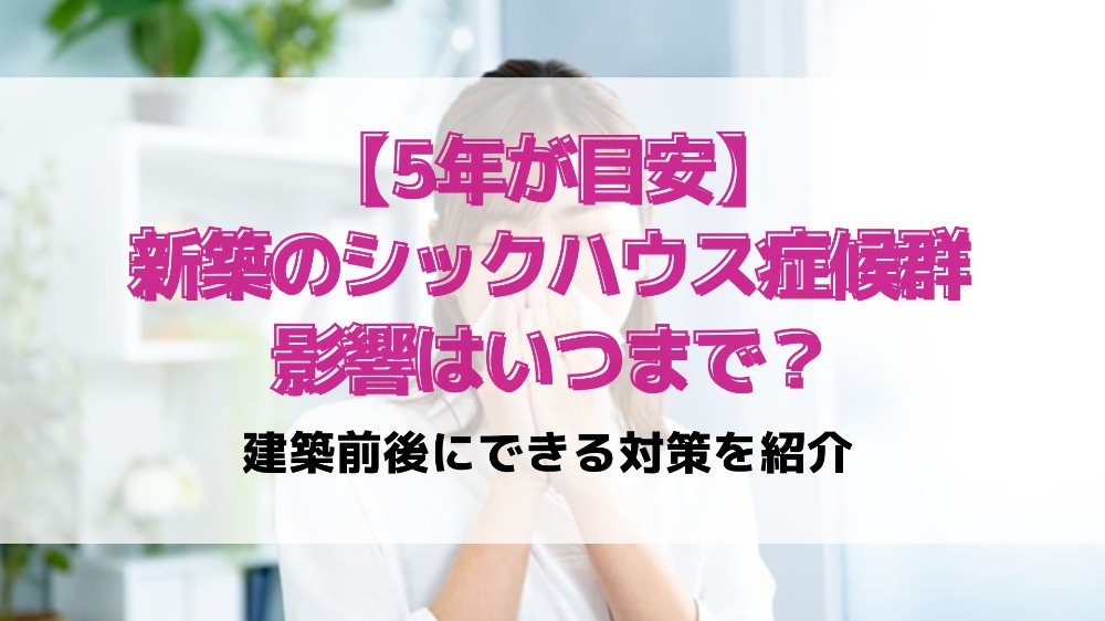 新築のシックハウス症候群の影響は、5年が目安とされています。しかし「建築時に使用する建材の種類」や「日常的な家のメンテナンス」によって、シックハウス症候群の影響が出る期間は変わります。
