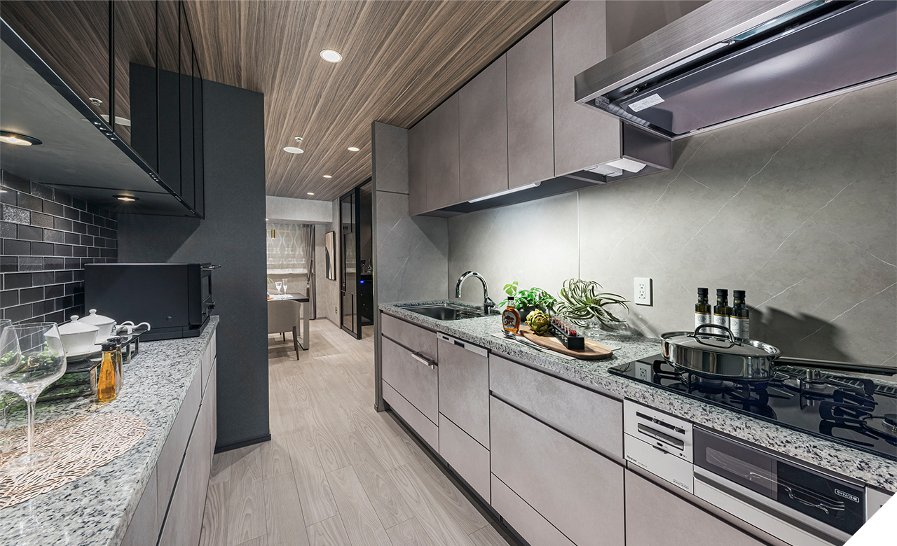 カウンタートップには天然御影石を採用。高級感と上質感を演出します。