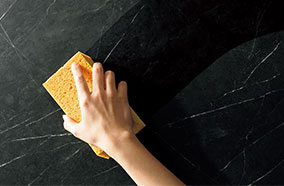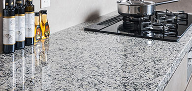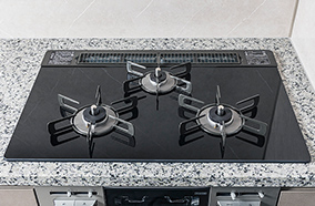 カウンタートップには高級感と上質感のある天然御影石を採用。デザイン性が高く、傷がつきにくいのも特徴です。