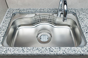大きなお鍋や洗い物も効率よく洗えるシンクは、水はね音を抑えた静音タイプを採用しています。