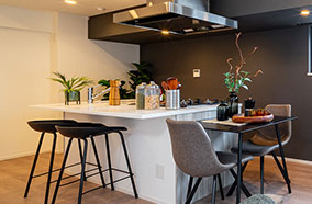 機能性に優れ、開放感あふれるアイランドキッチン。スタイリッシュな空間を創出します。