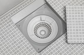 汚れがつきにくく洗いやすい、シンプルで凹凸の少ない形状のトラップ、封水筒、髪の毛が絡みにくいヘアキャッチャーです。