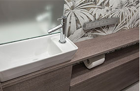 手洗い付カウンターを設置。キャビネットに掃除用具などの収納ができます。