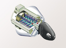住戸部には約5兆5千億通りもの理論鍵違い数を有した、不正解錠や不正複製が極めて困難なクラビス(Clavis)F22シリンダーを採用。キーはリバーシブルで使いやすいディンプルキーです。