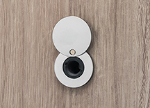玄関ドアに来訪者を確認できるドアスコープを設置。カバーが付いているので防犯にも役立ちます。