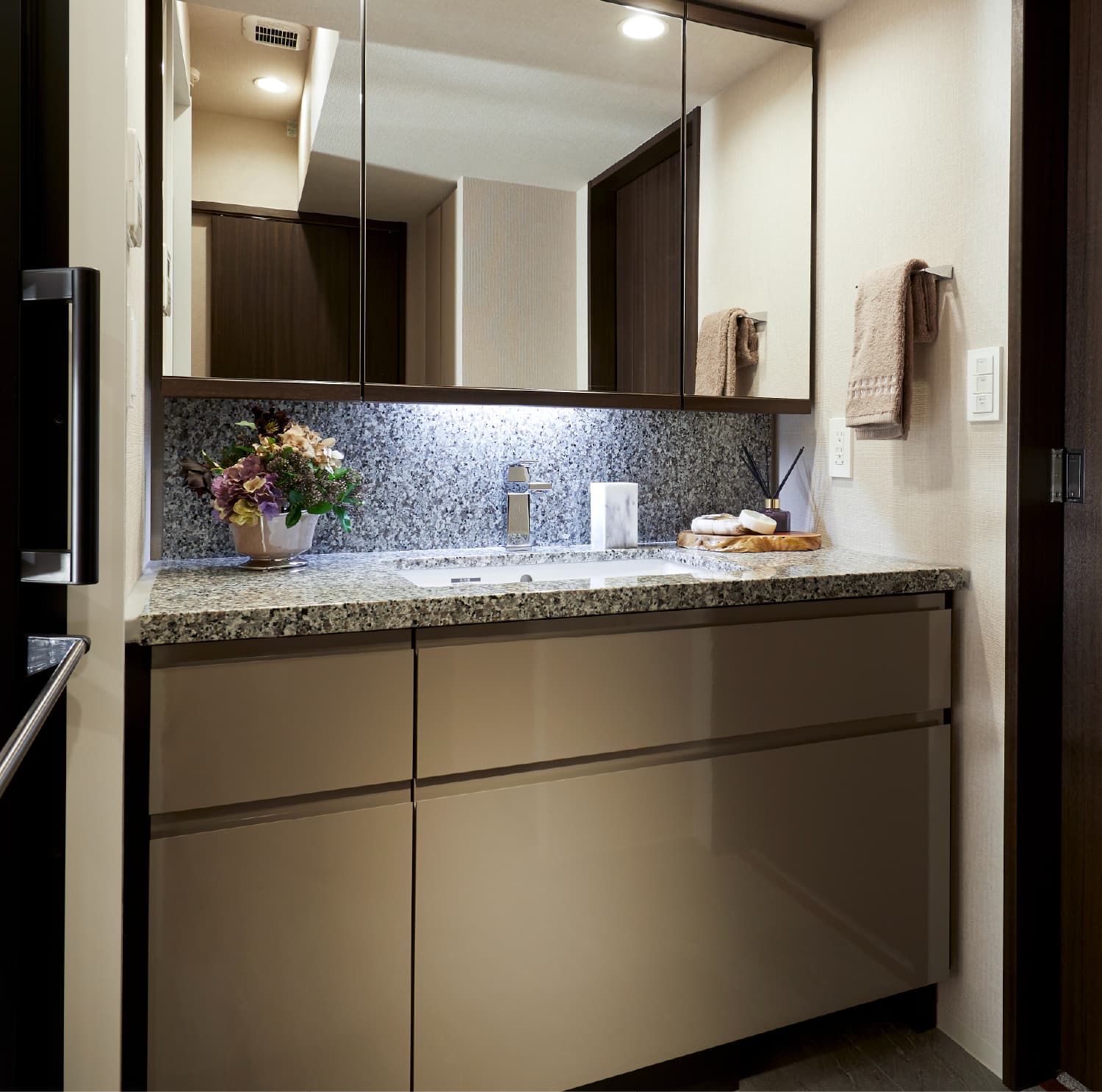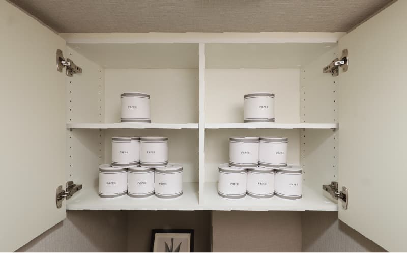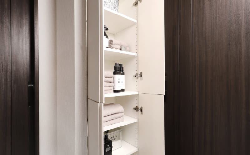 タオルなどを収納することができるリネン庫をパウダールームにご用意しています。