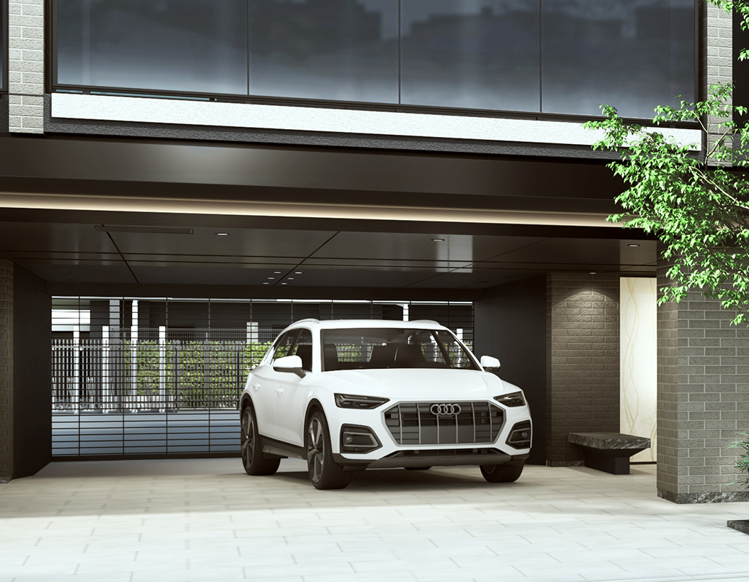 マンションへのアプローチを、自動車用と歩行者用で分離。お出かけの際など、小さな子どもやお年寄りでも安心です。
