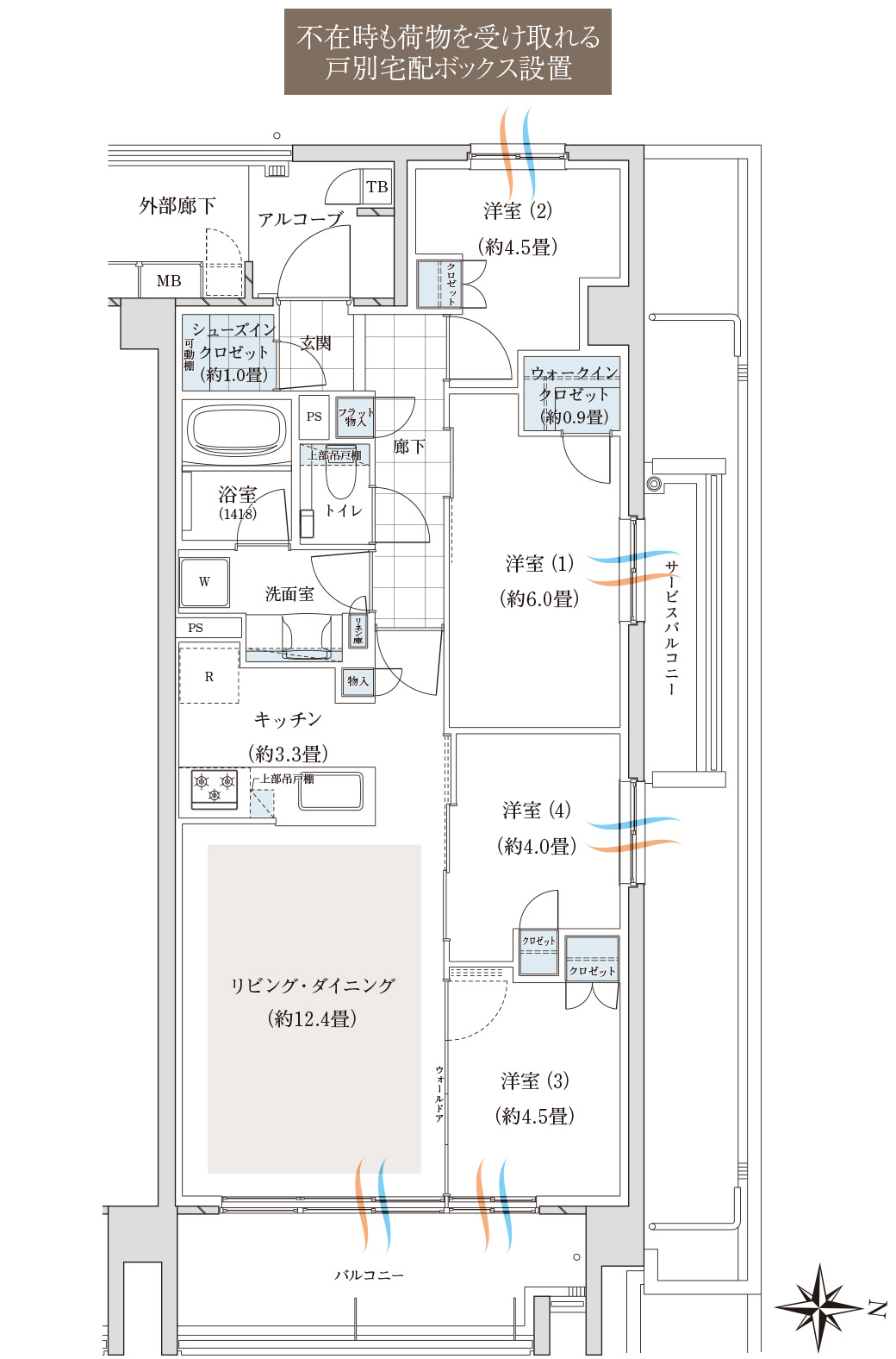 バルコニー面積/8.94㎡ サービスバルコニー面積/4.00㎡