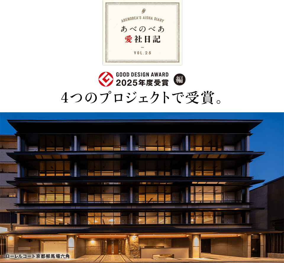 近鉄不動産は、「ローレルコート京都柳馬場六角」をはじめ、4つのプロジェクトで2025年度グッドデザイン賞を受賞しました。どのようなプロジェクトで受賞したのか、あべのべあも興味津々の様子です。