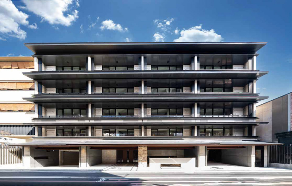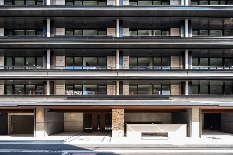 地上5階地下1階建、総戸数32邸の「ローレルコート京都柳馬場六角」は、京都中心部に位置する柳馬場通に面した市街地に誕生しました。柳馬場通周辺は、歴史・文化を色濃く感じられるエリアで、京都市によって旧市街地型美観地区等に指定。立地にふさわしい伝統的な風情や日本の美意識を踏襲したデザインのほか、環境負荷の低減にも取り組みました。