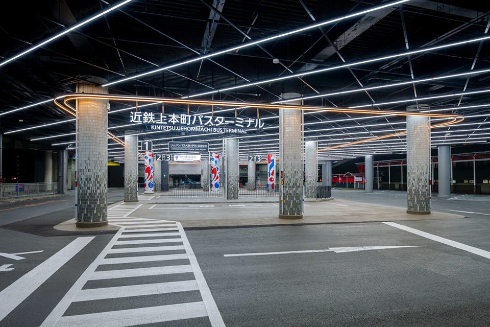 大阪難波、神戸三宮をはじめ、奈良や名古屋、伊勢志摩など各方面の列車が発着する近鉄「大阪上本町」駅。同駅のバスターミナルが大阪・関西万博のシャトルバス発着場となることが決定し、リニューアルと同時に駅連絡通路を新設しました。従来のバスセンター建物を撤去し、発着エリアを拡張。また、バスターミナルと待合スペースおよび駅からバスターミナルへの動線を整備しました。
