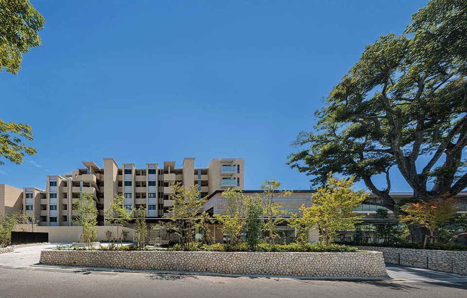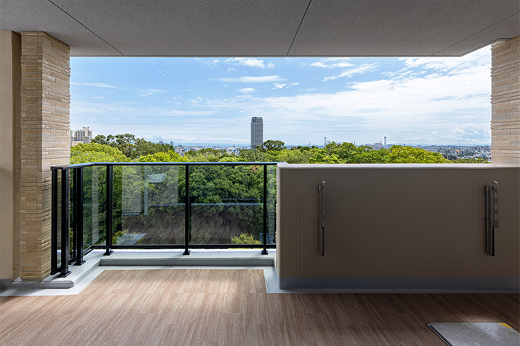 六甲山の麓に位置し、明治以降に邸宅用地として拓かれたエリアに誕生した「アトラス御影山手」。建替え事業として進められた本物件は、「近隣の皆にも喜んでもらえる建替えにしたい」という従来居住者さまの希望に応えたいという想いで、石垣や屋敷林がつくる伝統ある街並みと調和するデザインを実現しました。森のような庭園を望む開放的なバルコニーなども特長です。