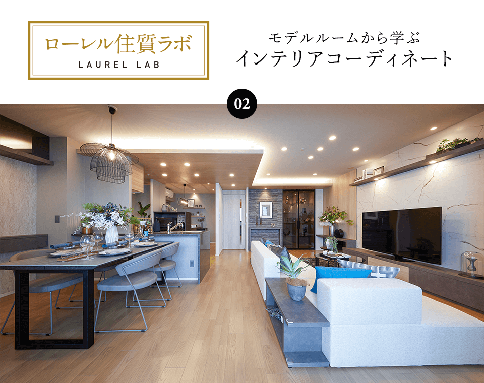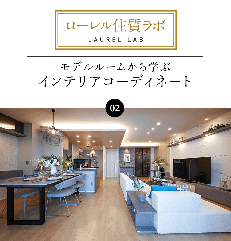 「ローレル」マンションシリーズのモデルルームでは、インテリアコーディネーターがこだわった、心地よく素敵な空間を体験することができます。コーディネートをひもときながら、居心地のよいインテリアのヒントを探ります。