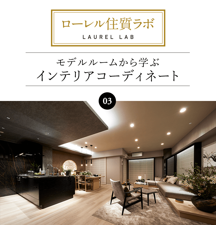 「ローレル」マンションシリーズのモデルルームでは、インテリアコーディネーターがこだわった、心地よく素敵な空間を体験することができます。コーディネートをひもときながら、ラグジュアリーな空間をつくるヒントを探ります。