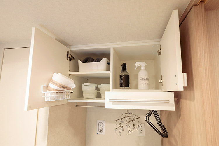 ご主人「細かいところまで気が利いていて、『ここに何か入れたいな』と思った場所に、ちょうど収納スペースがあるんです。洗濯機の上の吊戸棚に引き出し式のハンガーパイプがあってすごく便利です。後付けするよりも最初から造作であるほうが見た目も綺麗。玄関の下駄箱に引き出し式のスツールがあって、今はまだ使うことはないですが、年を重ねると必要になってくるはず。将来のことまでちゃんと考えられていて、本当にありがたいと思います」