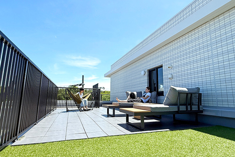 奥様「私はルーフテラスかな。夕方にコーヒーを飲みながら過ごす時間がすごく好きです。家にいながらアウトドアを楽しめるって、本当に贅沢だなと感じています。こちらに入居してから家で過ごす時間がより増えました。以前は、ちょっとした気分転換でカフェに行ったりしてましたが、もう行かなくなりました。旅行にもあまり行きたいと思わなくなるようになって。朝起きたときにバルコニーからの景色を見ると、それだけでちょっと旅行に来たみたいな気分になるんです」
