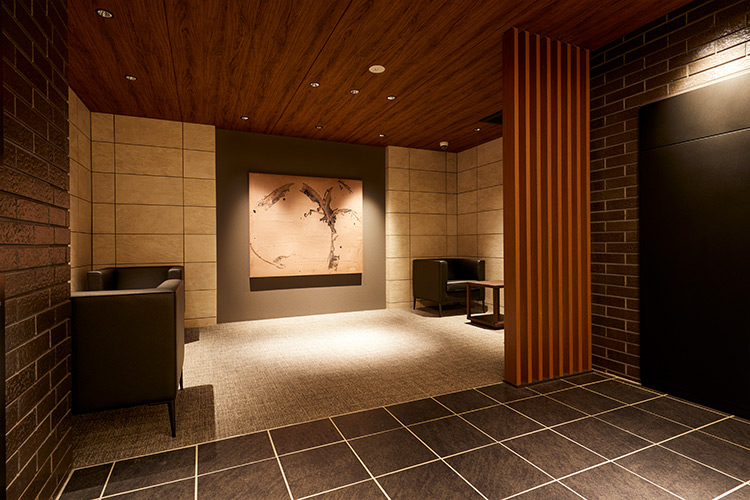 奥様「一般的なマンションは明るい色合いが多いように感じますが、こちらはダークな色味でシックでかっこいいなと思います。外観もラウンジもデザインが落ち着いていて、高級感がありますね」