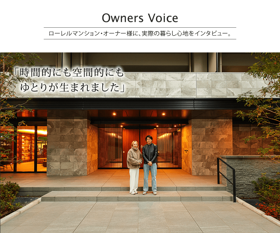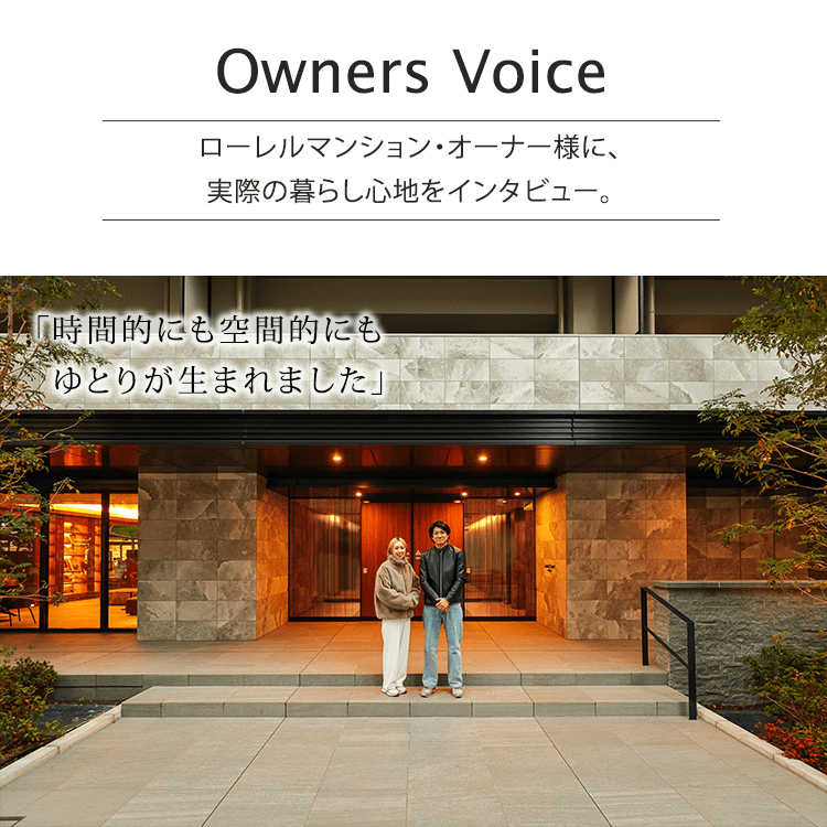 ご主人「建物外観もエントランスホールも、デザインに上質な雰囲気があり、エントランスを通って中に入ると空間が切り替わるような感覚があって『家に帰ってきた』と実感できます。オーナーズラウンジはまだあまり使ったことはないですが、来客があった際にここで対応できるので便利ですね」