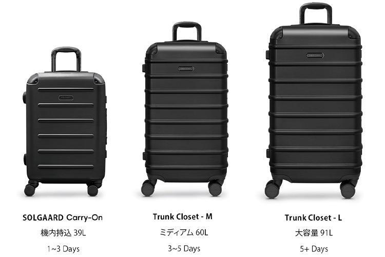 TIME誌で「最も優れた発明品」を受賞するなど、“旅するクローゼット”として話題となったスーツケース。衣類や小物類が整理収納しやすいシェルフが内蔵され、面倒な荷造りや旅先での荷解きがスムーズに。内側の収納ポケットに手持ちのバッテリーを入れ、コードに接続すれば中を開けずにスマートフォンなどが充電できます。また、耐久性の高いドイツ製ポリカーボネートを用い、機内持ち込み可能な39Lのほか、60L・91Lもラインナップ。