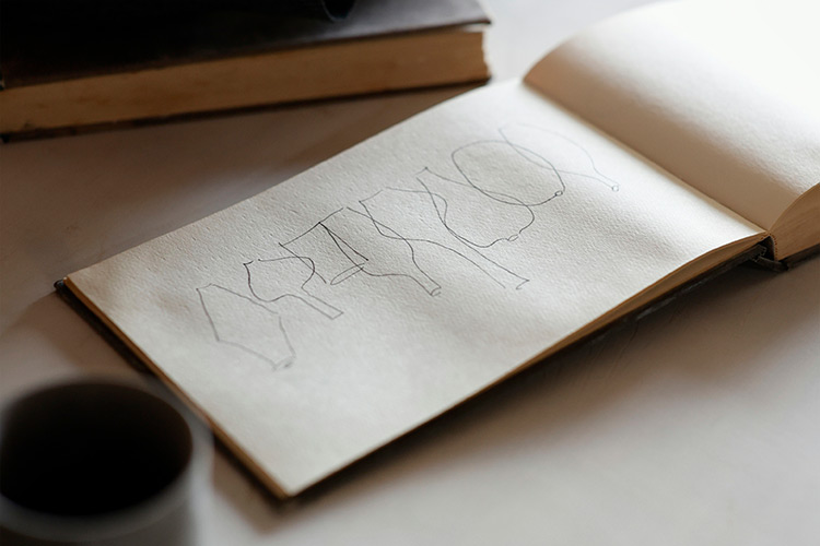安藤さんの制作は、まずはスケッチを描くところから始まります。「平面で真横から見たときの理想的なフォルムを描きます。ペンを走らせることでしか生まれないカーブとか、2次元でしか表現できない絶妙なラインがあるんです。フォルムを描いたら、そのイメージをろくろを回しながら立体的に落とし込み、ミリ単位で調整していきます」