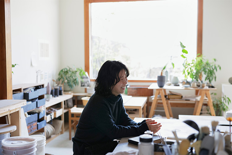 兵庫県丹波篠山市にアトリエを構える陶芸家の安藤 由香さん。凛とした佇まいや機能美とともに、自然の情景や陰影を取り込んだ器を生み出しています。安藤さんのアトリエを訪ね、作品の背景や作り手の想いなどをお聞きしました。